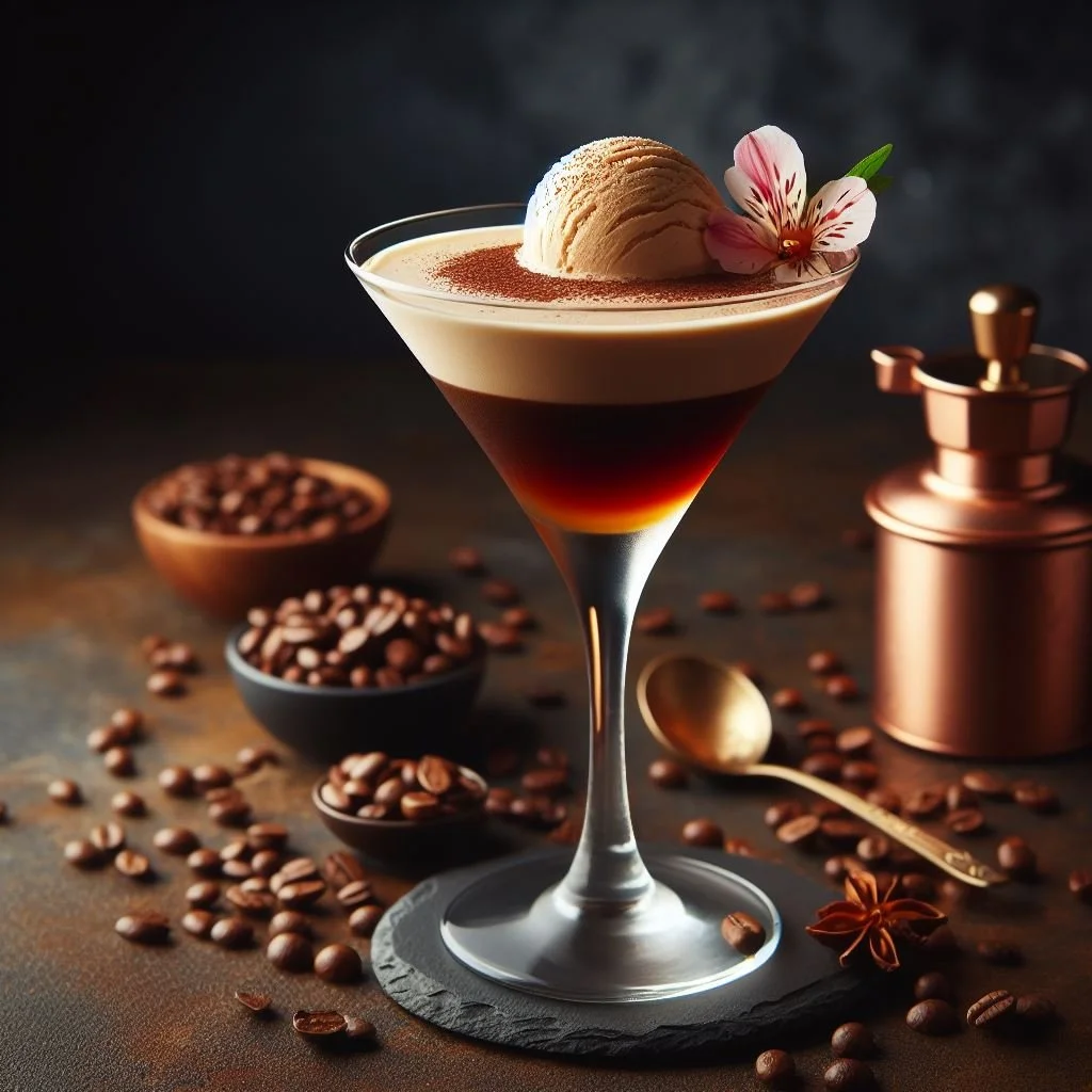 Scoop ice cream into martini glass. Pour espresso, coffee liqueur, and rum into cocktail shaker with ice. Shake and strain over ice cream.