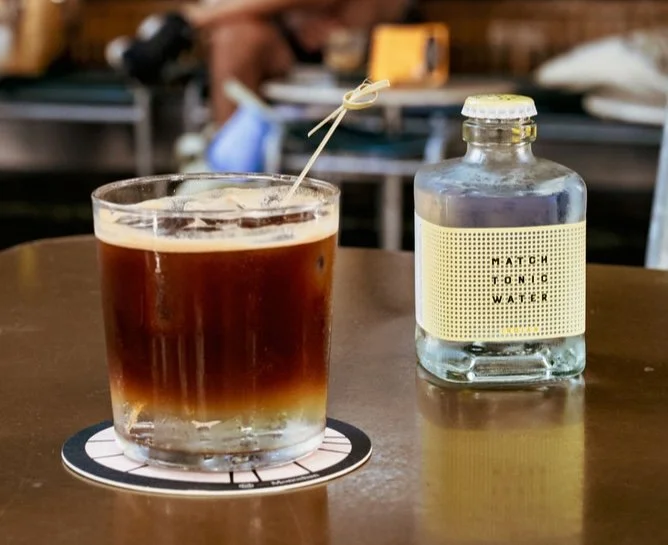 Fill a highball glass with ice and add tonic water. Add cold brew last to avoid foaming and garnish with a lemon zest and 2 coffee beans.