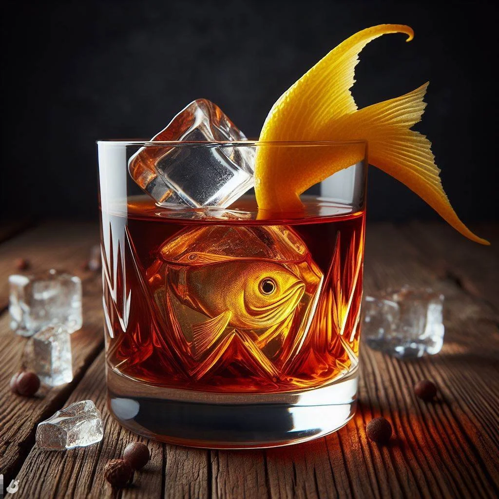 Place a large round ice cube in an old-fashioned glass and add ingredients. Stir and garnish with lemon peel.